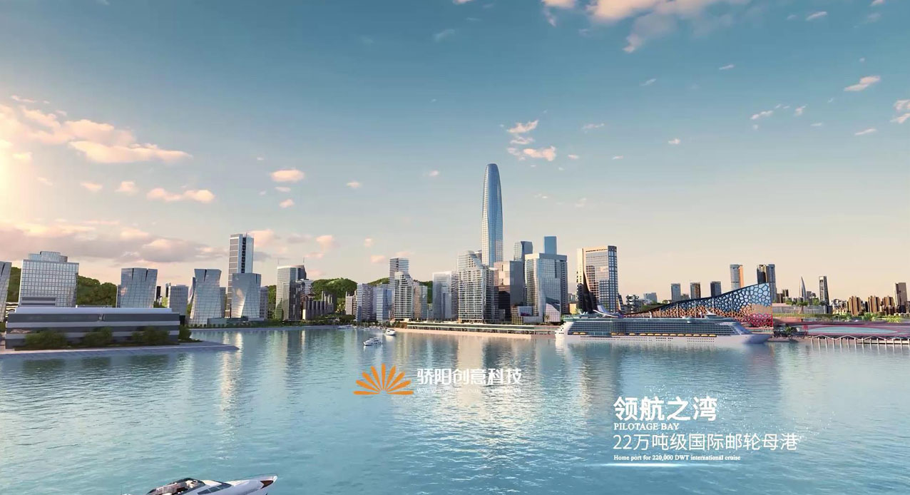 “一海簇?fù)?,眾山環(huán)抱”,我們使用CG語言,真實(shí)呈現(xiàn)出“國際樞紐,優(yōu)質(zhì)人文”的灣區(qū)價(jià)值。