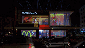 麥當勞在約旦安曼的 Al Madinah 街開設了全球第三大分店,如果算上停車位的話,這家麥當勞餐廳可以算得上是全球第一大了,同時他也是中東和亞洲的第一家分店。該分店專注于互動數(shù)字體驗和富有想象力的餐飲氛圍,在當?shù)貍鹘y(tǒng)文化特征的建筑群內(nèi)顯得有些格格不入。