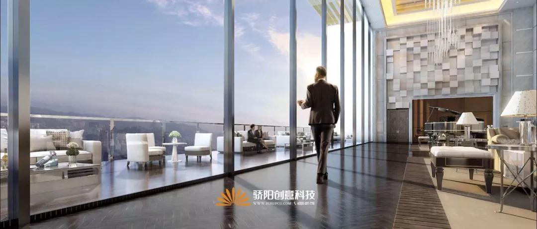 鏡頭快速推進,特效標示寫字樓,鏡頭聚焦到雙子塔,重塑中心區豪宅新標準。