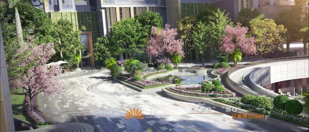 以男主的運動軌跡,帶出項目主體。流水景致、景致小品、名貴綠植,打造現代化親水陽光中央休閑區,演繹現代生態奢居美學。