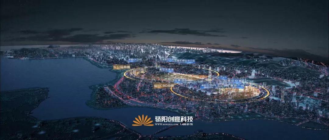 時光荏苒,夜幕降臨;長鏡頭環繞大盤,福田CBD新地標與深圳濱海相映生輝。