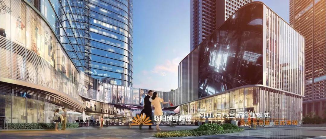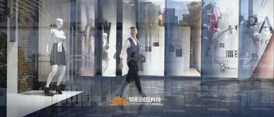 驕陽在影片上采用一鏡到底的方式,來展示區位資源,以及完善的商業動態體驗。人物穿越各類業態帶出百萬大城氣質。