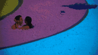 游客走進(jìn)泳池,立刻被90英尺高的彩虹形狀的水池所吸引,它的表面被顏色圖形覆蓋,并且是流動(dòng)的,有生命的。而當(dāng)游客跳進(jìn)泳池開(kāi)始玩樂(lè),這里才是真正的“海洋球世界”,比兒時(shí)記憶中的“海洋球”更加動(dòng)人。