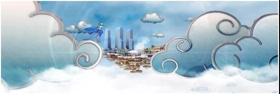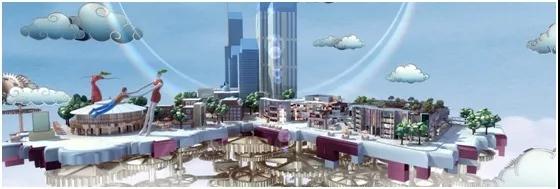 精靈隨著蝴蝶,穿過疊散云層,來到天地與壹方南館、北館三位一體組成的天空之城。