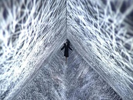 這是一個(gè)由藝術(shù)家anadol創(chuàng)建的室內(nèi)沉浸式“無(wú)限”環(huán)境。在這里,參觀者身處一個(gè)360度投影的范圍之中,可以“浮”在投影的“燈光”中感受周圍無(wú)形的空間。