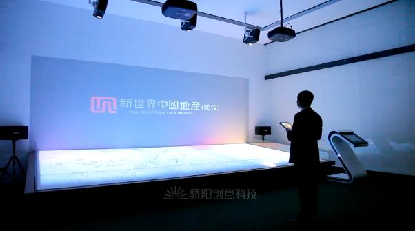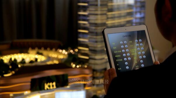 展廳中,置業顧問使用中控系統——即平板電腦對所有展項進行統一管理和集中控制。在引導參觀者參觀的過程中,置業顧問可隨時處理全息投影電腦開關、投影設備開關、影片播放暫停、快進快退、聲音大小控制等程序,不僅展現了展廳數字化、集成化、智能化的現代展示模式,更與T+運用互聯網+實現精準化O2O的經營模式共同發聲。