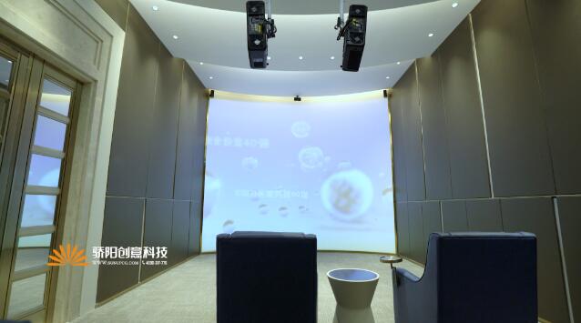 營銷中心影音室,精致態(tài)度,隨處可見。天花采用白色主調(diào),延續(xù)整體藝術(shù)唯美風(fēng)情,墻面采用質(zhì)感十足的棕色內(nèi)裝,營造時(shí)尚深邃的觀影環(huán)境。雙通道影院技術(shù),以弧幕呈現(xiàn)包裹式觀影氛圍;五把舒適的觀影座位,為觀者提供奢華觀影體驗(yàn)。