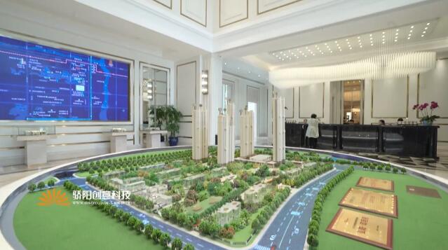 項(xiàng)目沙盤區(qū),動(dòng)、靜結(jié)合,立、面相輔。沙盤上,印月府與周邊環(huán)境自在融合,交相輝映。墻面上,交通區(qū)位與生活配套以二維形式展現(xiàn)在受眾眼前,簡潔直觀,一目了然。