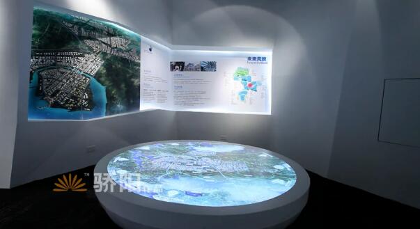 為展示項目優勢,我們在同一展區置放內嵌式一體機和高清圖文展板,通過將動態畫面與靜態圖文相結合,豐富展示內容,并通過將項目現狀與未來可能的更新在一體機做后期融合,增加展項的效用價值。
