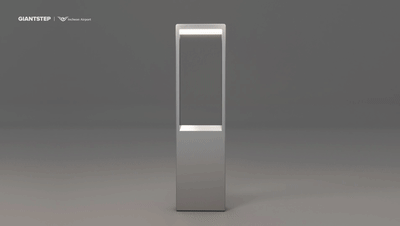 用來互動的"傳感框架"根據該項目特點創建,作為一個信息亭,起到連接用戶和大型媒體塔的作用。在疫情特殊時期,這樣一個通過紅外傳感器制造的非接觸式信息亭,使用戶可以在沒有直接接觸的情況下利用手勢,與屏幕實現實時互動,而且其高度使得各個年齡段的人,都能輕松使用。
