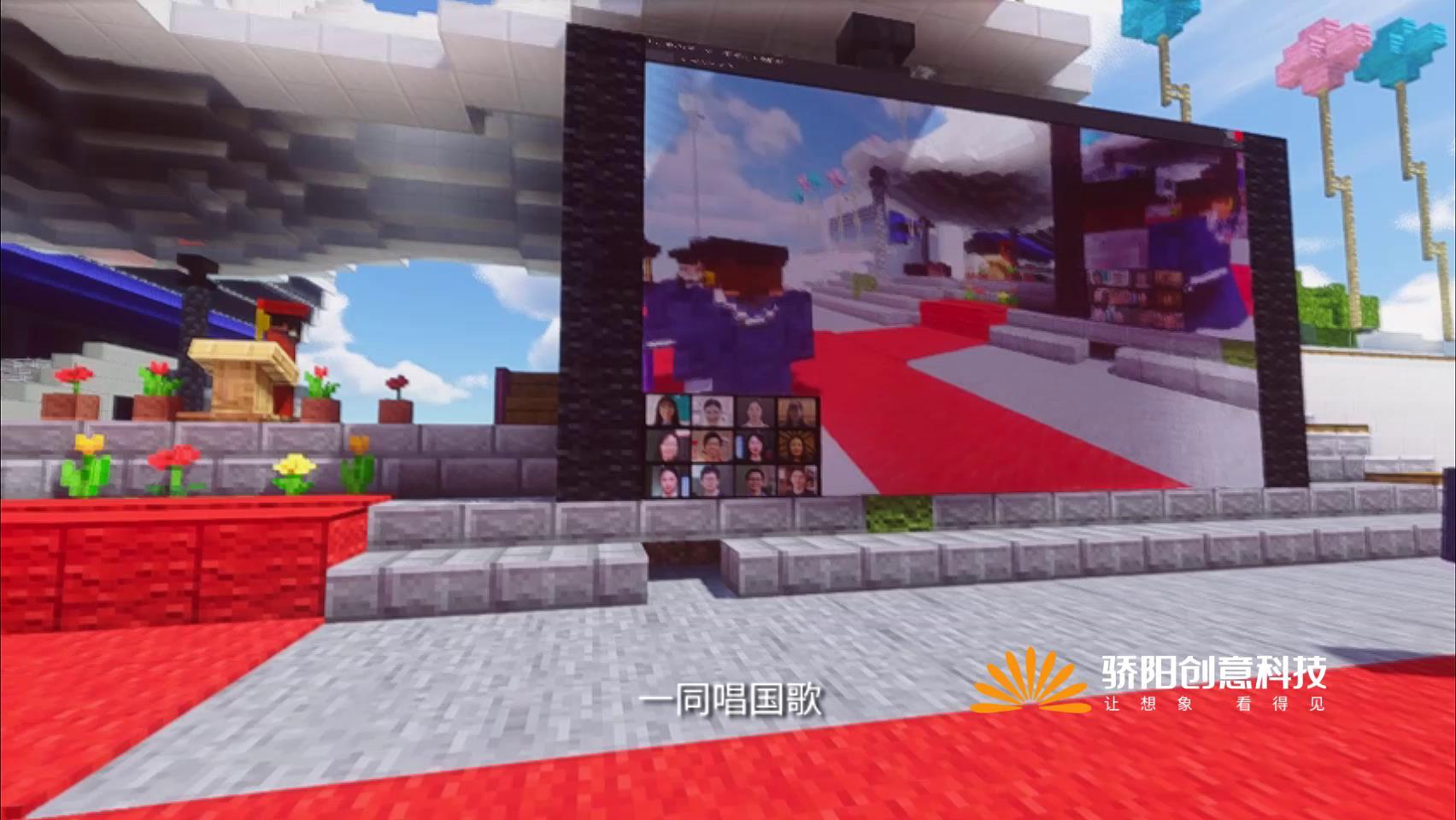 于會(huì)場(chǎng)集合,在復(fù)刻的校區(qū)中,參加線上典禮。