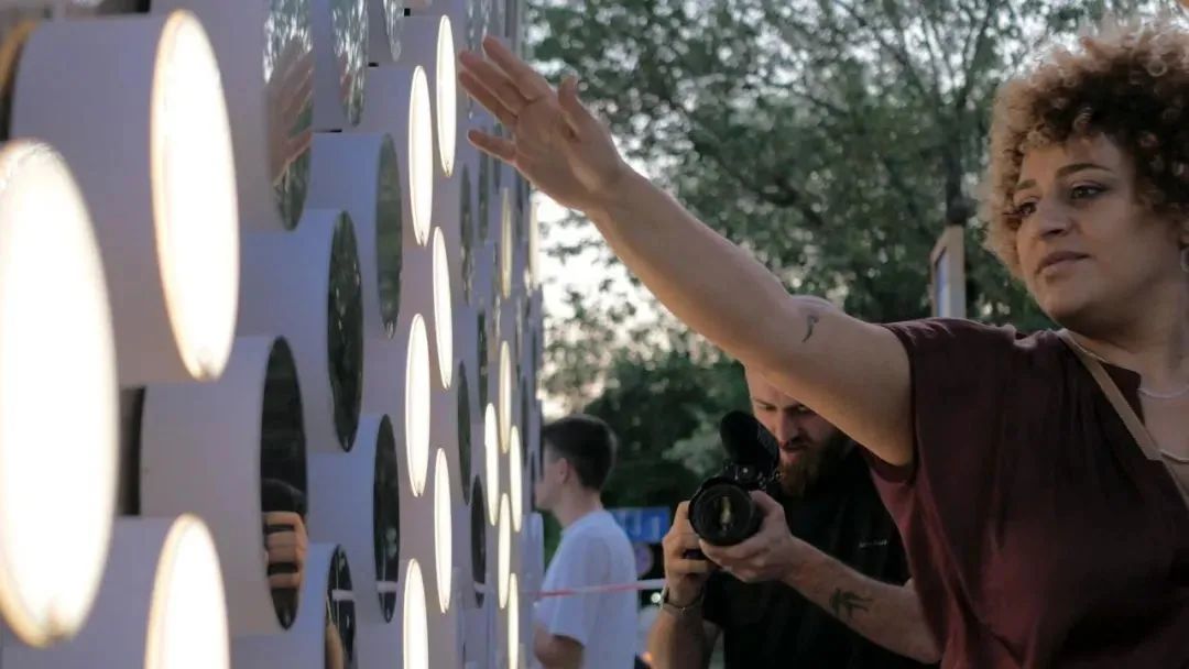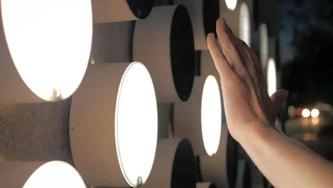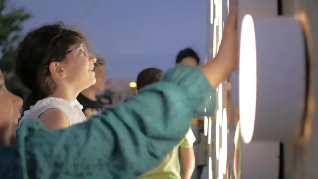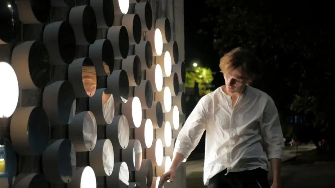 這個交互式燈光藝術裝置,被安裝在埃里溫 TUMO 學校主樓前的公共汽車站。