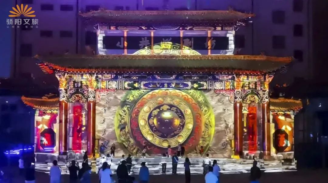 驕陽創意科技負責了本次夜游改造項目,為更好的展現小井峪獨有的文化魅力,驕陽團隊傾心打造了創意建筑投影秀、激光水秀、互動地幕等多個夜游區域。