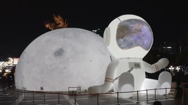 高10米的巨型宇航員藝術(shù)互動(dòng)裝置,憨態(tài)可掬的姿態(tài),引來路人駐足留影。