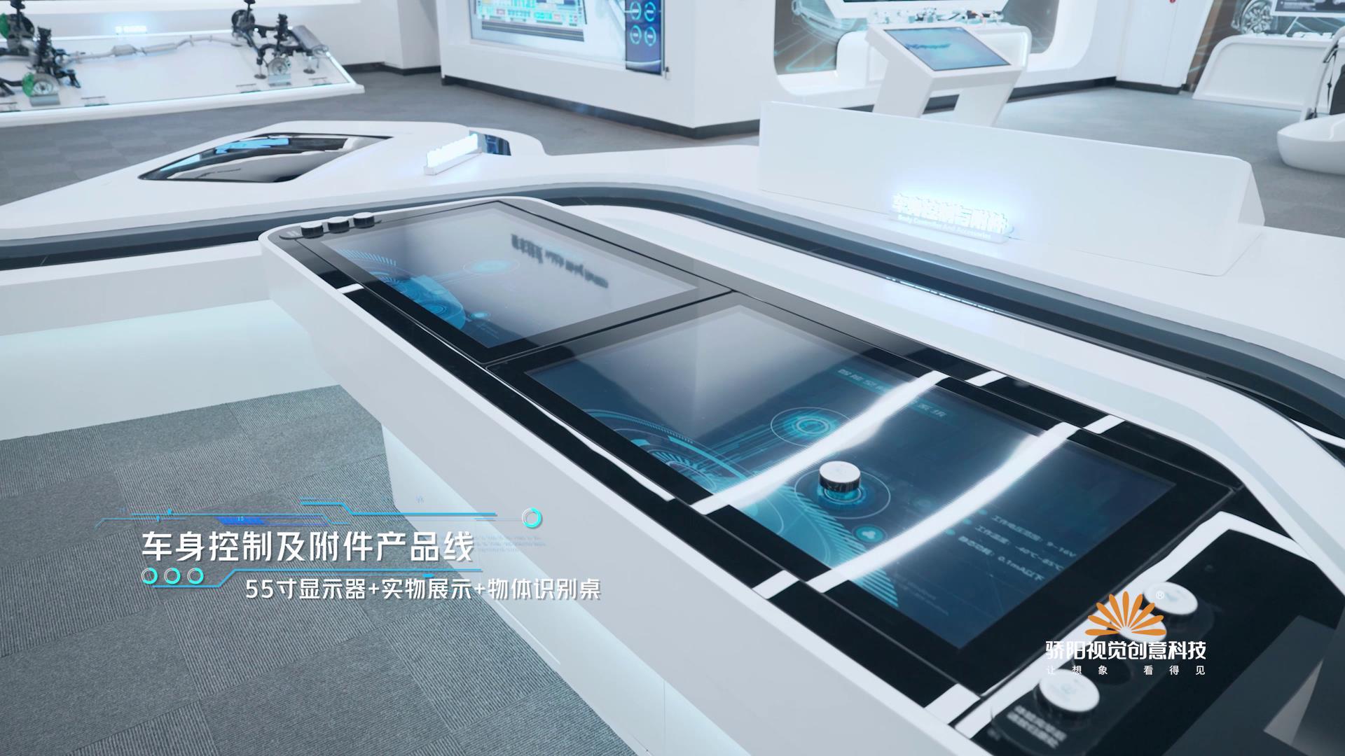 驕陽策劃團隊延續了比亞迪集團展廳的簡約風,融入汽車金屬元素。以科技為主基調,不同展項巧妙的相互結合,訪客在其互動中提升體驗感和參與感,在互動中了解弗迪科技的企業文化和創新技術。