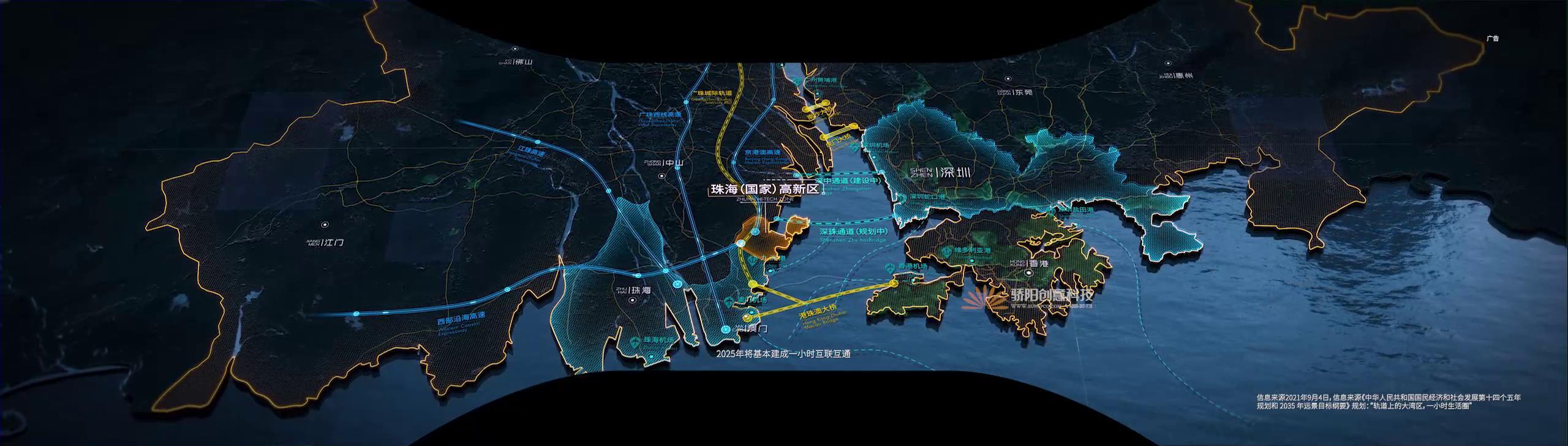 通過四大灣區的重要性,呈現出對于全球的影響地位、繁榮發展等多方面,從具象的城市形態、親海關系到抽象的數據經濟、人口、產業等,凸顯出灣區城市的繁榮、重要性、海洋屬性。營造直指如今中國的粵港澳大灣區,這里已經成為國家未來的發展方向。