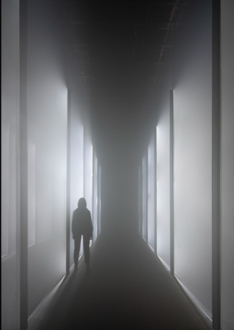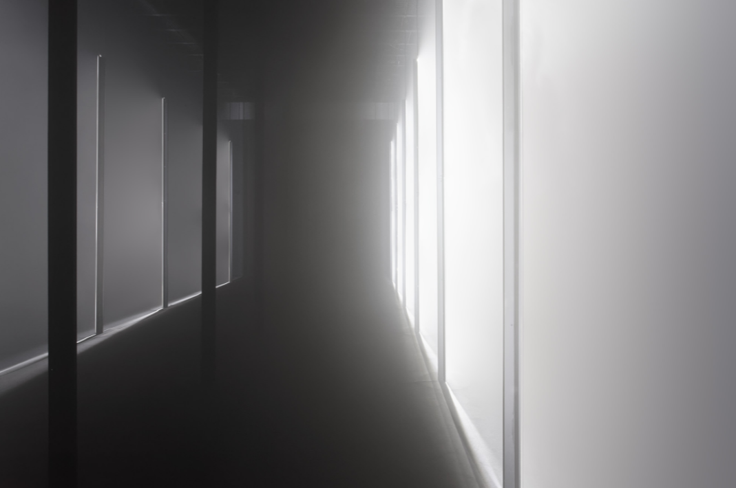 在強烈的黑白對比中共鳴產生的聲音氛圍中,觀眾在這個模糊而朦朧的空間中摸索前行,給予他一種穿越光門的感覺。